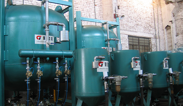 設(shè)備采用雙缸體結(jié)構(gòu),由進氣閥、排氣閥、遙控磨料閥及控制系統(tǒng)、操作開關(guān)等組成